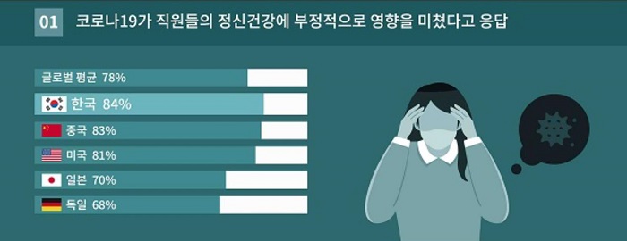 ´õ¿íÀÌ, Äڷγª19·Î ÀÎÇÏ¿© ÀÌ·¯ÇÑ ±Ù·ÎÀÚ ½ºÆ®·¹½º°¡ Áõ°¡Çϰí ÀÖ°í, ¿ì¸®³ª¶ó Á÷ÀåÀεéÀÇ 84%°¡ Äڷγª19 ÀÌÈÄ ¾÷¹« ½ºÆ®·¹½º°¡ ´Ã¾î³µ´Ù°í ´À³¢°í ÀÖ½À´Ï´Ù.